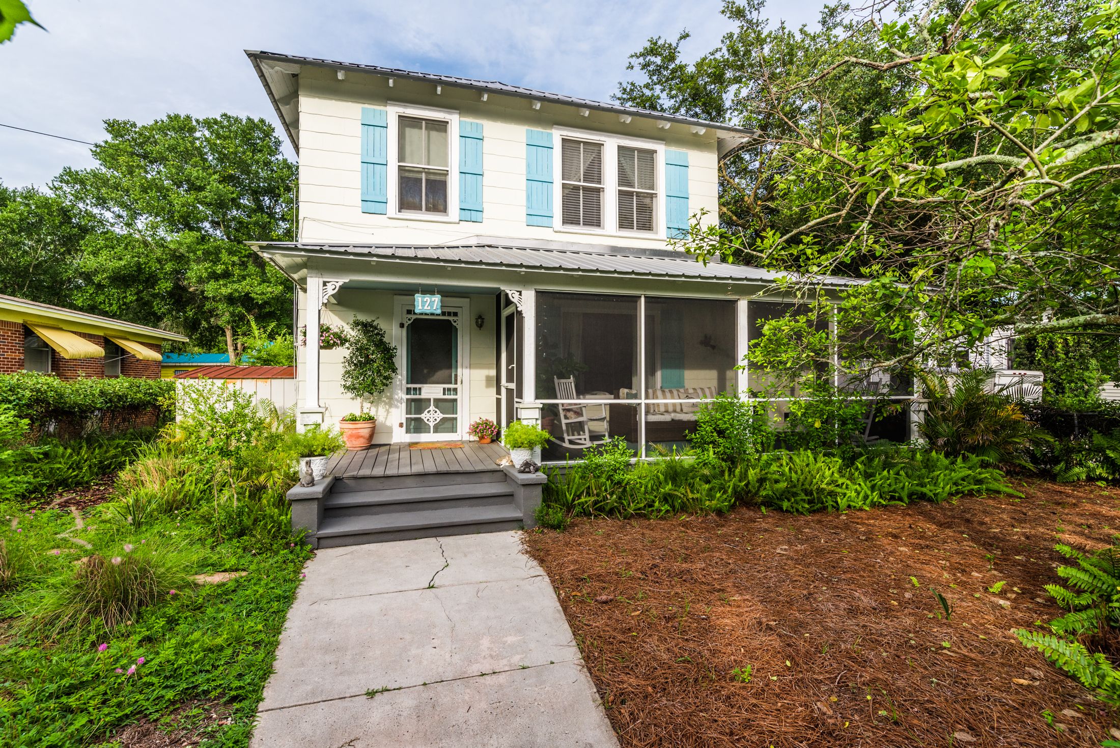 Directions: San Marco Avenue to Park Avenue (look for pink Florida Motel). Go east on Park Ave for two blocks and continue straight as Park becomes Atlantic Avenue. Go halfway down the block and look for the sign on the north (left) side. Follow long natural drive to the house.